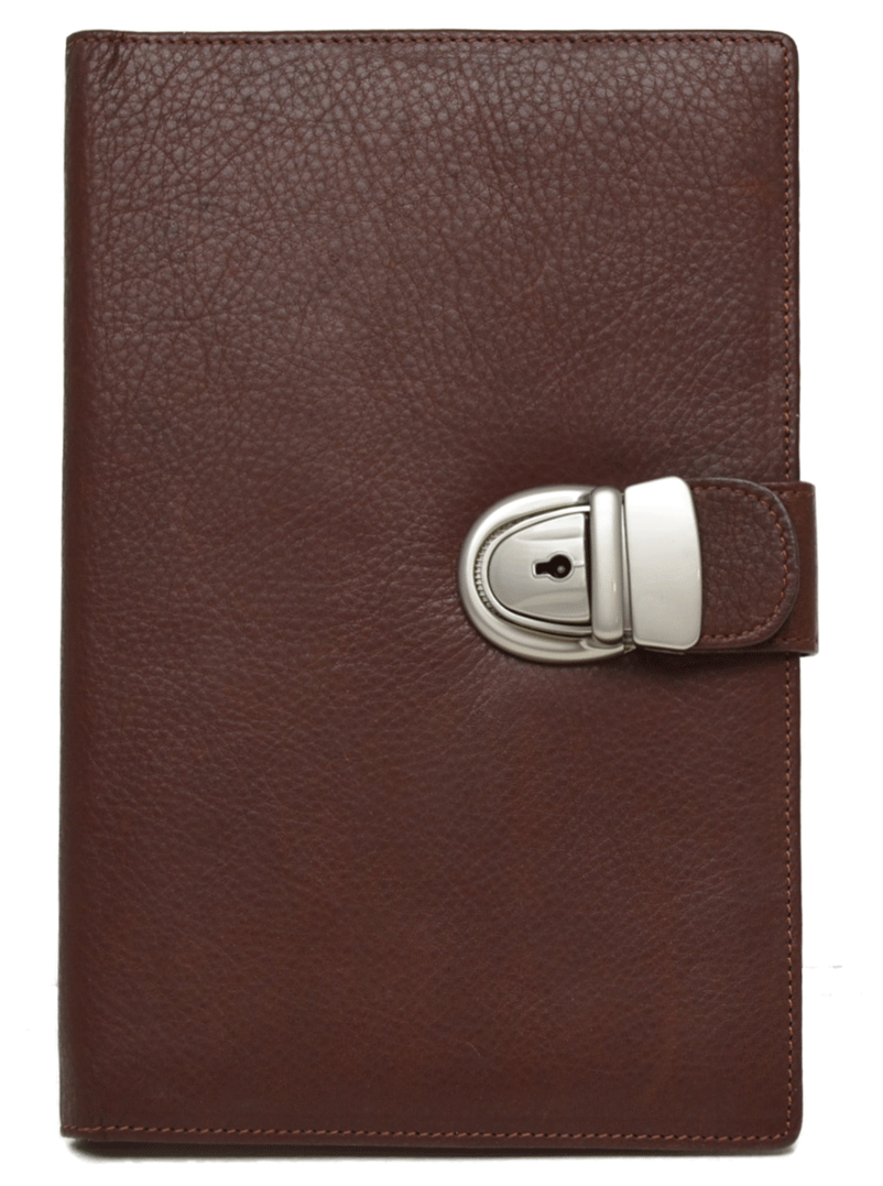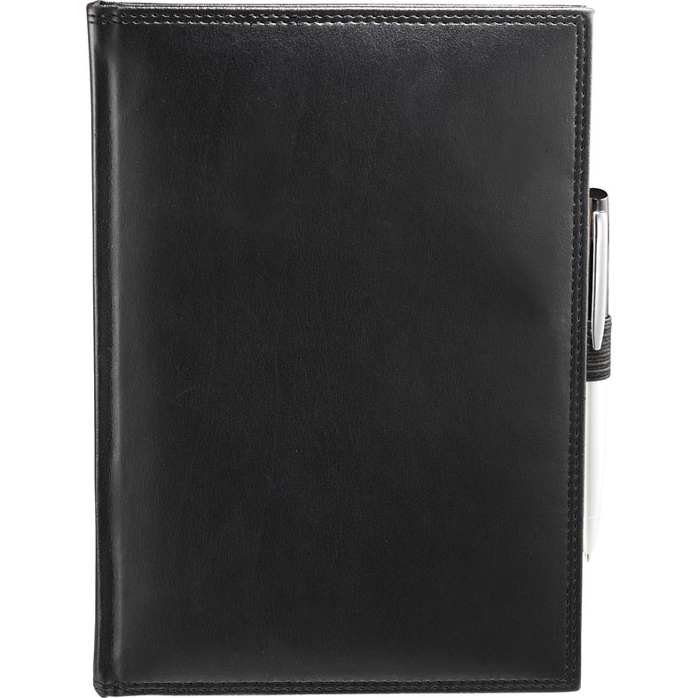 Features : Full grain Italian-style cowhide leather. Black moiré lining. Elastic pen loop (no pen included). Choice of journal, calendar or address book insert included.