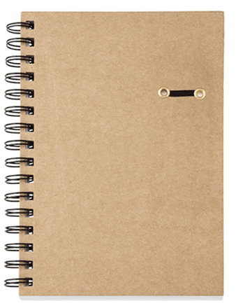 Features : Recycled journal made of cardboard with a spiral binding. The cover has an elastic pen loop (no pen included). 80 ruled ivory sheets, made of 50% recycled paper, are included.