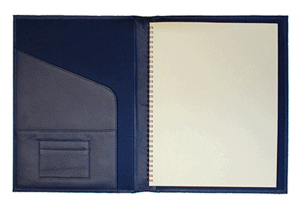 Features : Full grain leather journal notebooks have genuine leather covers. Covers are completely hand stitched, with turned edges and foam padding. Inside has a document flap and business card pockets. Holds an 8 1/2" x 11" notebook or letter size pad, with both vertical and horizontal slots on the right side. Wire-bound notebook with 160 ruled or blank pages with a black linen or sandstone cover included.