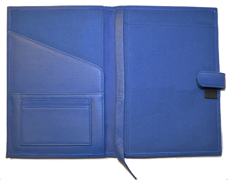Features : Elastic pen loop, tab-and-loop closure and blue and silver ribbon page markers. Business card slot. Includes a 100-sheet ruled journal book insert.